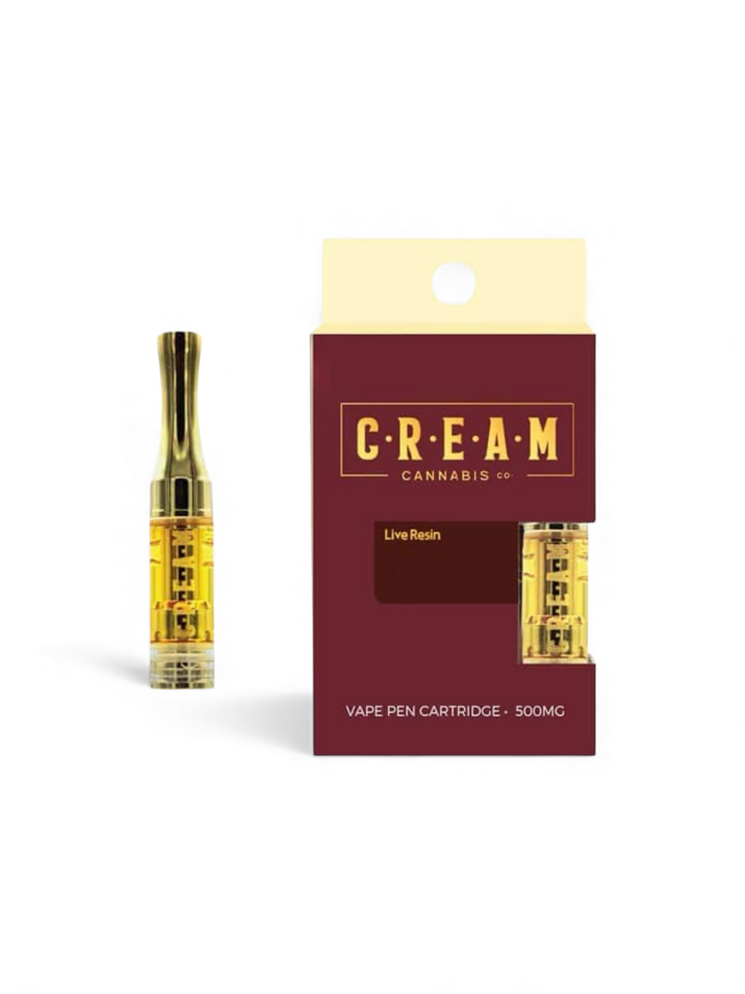 C.R.E.A.M. Live Resin cartridges contain a highly concentrated form of cannabis extract. Live resin is made from freshly harvested cannabis plants that are frozen immediately after harvesting, which preserves the plant’s terpenes and other volatile compounds. This results in a more flavourful and potent cannabis oil. These cartridges feature a ceramic coil for efficient vaporization of the oil. C.R.E.A.M. Live Resin Cartridges come in various strains, each with its unique flavour profile and effects. They are a popular choice among cannabis enthusiasts looking for a high-quality and convenient way to consume cannabis on the go.
